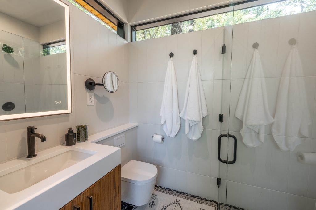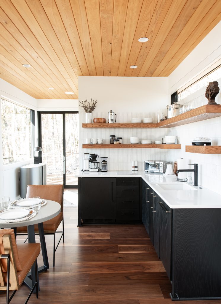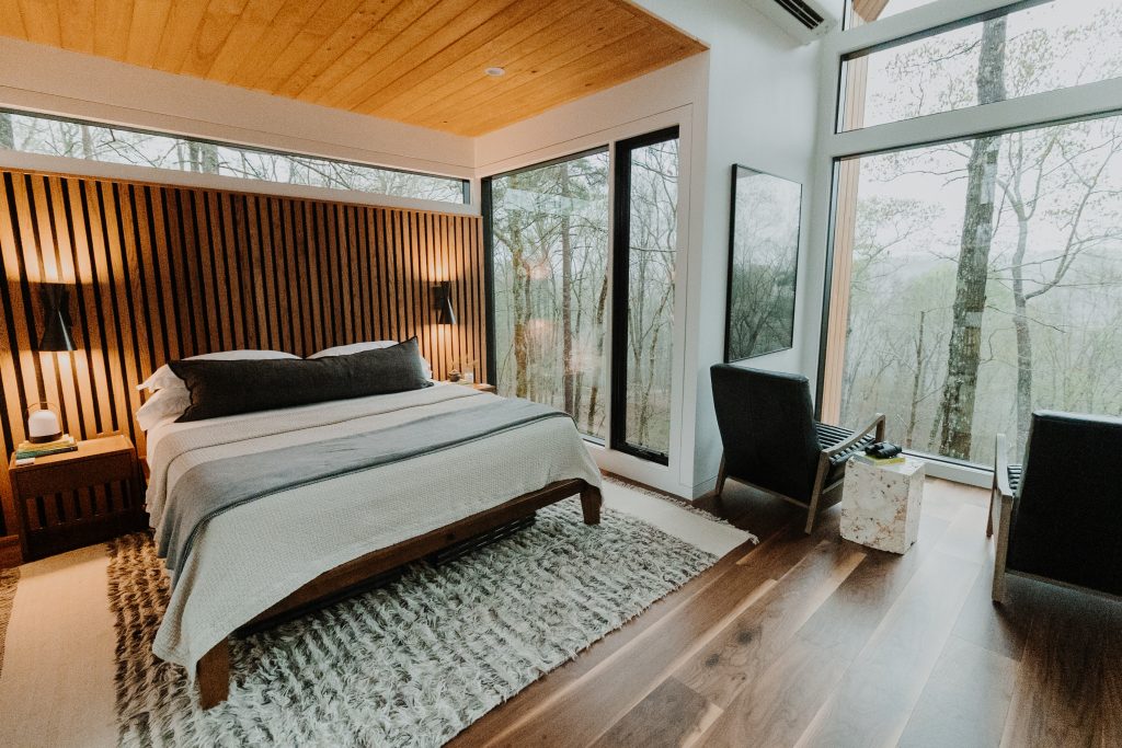 The first thing you notice are the floor-to-ceiling windows that surround it, drawing your eyes outside. At nearly 400 square feet inside, it has an open concept design with a fully-equipped kitchenette, bedroom and bathroom with dual showerheads and heated floors. The modern interior has all the comforts of a high-end hotel suite, from beautiful furniture to luxurious linens.